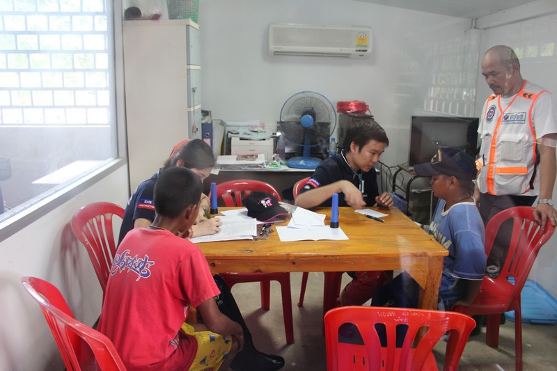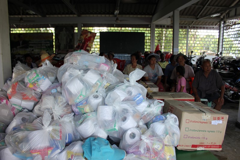 ชาวบ้านทยอยเข้ามารับการตรวจรักษาจากทีมแพทย์ และที่จุดนี้ผู้ใหญ่บ้านบอกว่ามี 300 ครัวเรือน แต่มีถุงยังชีพเพียง 200 ชุด เราจัดการเติมเต็มเสริมเข้าไปอีก 100 ชุด