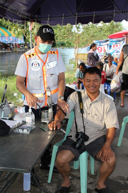 ลุงคนนี้กำลังวัดความดัน..เอ๊ะ หน้าคุ้นๆ อ้าว..พี่ปรีชา ตากล้องของเรานี่เอง