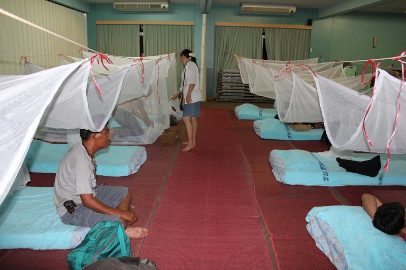 บรรยากาศที่พัก นอนในห้องประชุม (สบายเกินกว่าที่เราคิด เพราะเราชินกับการนอนกลางแจ้ง กางเต็นท์นอน)