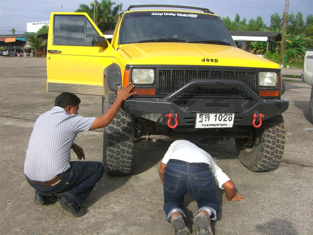 พี่ๆ น้องๆ ในที่ทำงานที่ใช้ Pajero ตัวใหม่กันอยู่หลายคัน แต่ละคันออพชั่นเพียบ แรงๆ สวย ๆ โฉบเฉี่ยวกันทั้งนั้นแหละครับ ก็ดีครับ แต่คงไม่ใช่แบบที่เป็นตัวผมครับ ผมอยากจบที่งบประมาณราวๆ ที่มีอยู่ โดยตอบสนองได้ทุกคำตอบในครอบครัวครับ ลำพังตัวผมนั้นทีแรกคิดไว้ว่าจะเอา JEEP โบราณ CJ 5 คานแข็งมาแต่งเล่นก็พอครับ จริงๆ แล้วไม่รู้หรอกครับว่า 4x4 คานแข็งมันดีจริงหรือเปล่า ไม่เคยลอง แต่ก็เห็นรถที่ปีนก้อนหินชอบวางคานแข็งกันจัง กับอยากมีส่วนร่วมกับตำนานคานแข็งของ JEEP ครับ เก่าไม่กลัว กลัวไม่ได้ปั้นเองครับ ชอบรื้อชอบซ่อมชอบแต่งเองเล็กๆ น้อย ๆ ครับ ประมาณว่าถอดเอาข้อเหวี่ยงออกมาทำความสะอาดอะไรประมาณนี้แหละครับ ( ล้อเล่นครับ ไม่ได้เก่งขนาดนั้นหรอกครับ ) ฝันไว้หลายปี เฝ้ามอง CJ 5 ที่สวยๆ ในบอร์ด JEEP MILITARYมาเรื่อยๆ ครับ แต่พอจะเอาเข้าจริงเลยนึกได้ว่า เล่น JEEP โบราณก็คงสนุกได้จริงแหละ แต่ครอบครัวเราเขาคงไม่สนุกด้วย ไหนจะเรื่องจำนวนที่นั่ง ความสะดวกสบาย แล้วยังมีเรื่องความปลอดภัยในการเก็บรักษาสัมภาระอีก เจ้าของตังค์กับลูกอยากได้รถนั่งที่นั่งสบายที่เข้าออกง่ายหน่อย เอาไว้ขับไปส่งลูกกับไปทำงานสลับกับกระบะ ISUZU SLX ขับสองคันเดิมที่ยังใช้งานได้ดีอยู่ นึกได้ว่าเคยเข้ามาดูในบอร์ดของ JUC หลายครั้ง เจอ XJ เหลี่ยมก็ว่าใช่เลยละครับ ดูเป็น JEEP มาก ผมว่าเป็นภาพลักษณ์ที่ดูเป็นอมตะนะครับ มี Class ดูแล้วไม่ตกยุคสมัย ยังไงก็ว่าจะเอา XJ เหลี่ยมนี่แหละ เลยไปขอดูรถคุณน้าที่ที่ทำงานครับ น้าแกก็ดีใจหายครับ เหมือนอย่างทุกท่านที่อยู่ในบอร์ดนี่แหละครับ แกเปิดหลักสูตรอบรมให้วันละคันเลยครับ XJ เหลี่ยม ZJ กับ WJ ครับ แกเปิดกระโปรง ( รถ ) อธิบายแต่ละรุ่นอย่างละเอียดเลยครับ เปรียบเทียบทั้งเครื่องยนต์ ช่วงล่าง ระบบส่งกำลัง มิติภายนอกภายใน ทัศนะการใช้งานจากประสบการณ์จริงที่แกใช้งานอยู่ แกชอบ WJ เป็นคำตอบสุดท้ายครับ