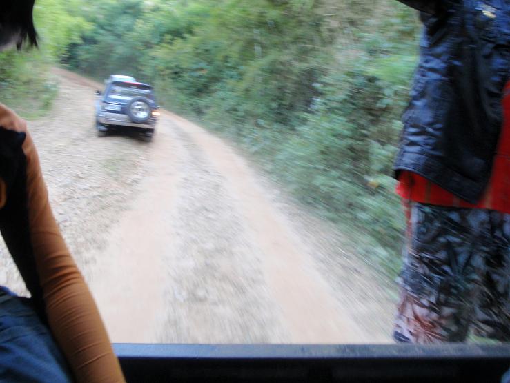 ขึ้นจากแพ นั่งรถ รีสอร์ท ส่งมารับ ระยะทาง ๑๔ กิโลเมตร บนเขา เป็นระยะทางที่สุดยอด ใช้เวลา ชั่วโมงกว่า วิ่งซะหัวขาว หัวแดง หัวโยกหัวคอน (ห้ามแปลเป็นภาษาอิสาน นะครับ 55555 คนฟังจะเสียว)