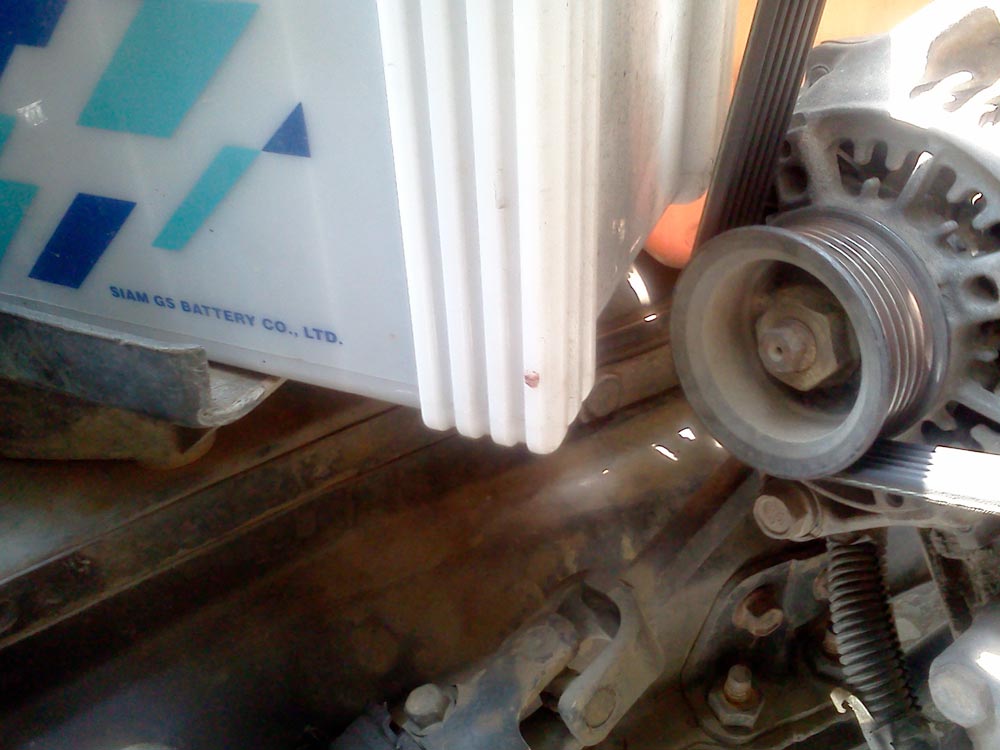 วางแล้วมันจะชิดไดชาร์จหน่อย แต่ว่าล๊อคดีๆก็ไม่เห็นมันจะไหลไปโดนนะครับ
