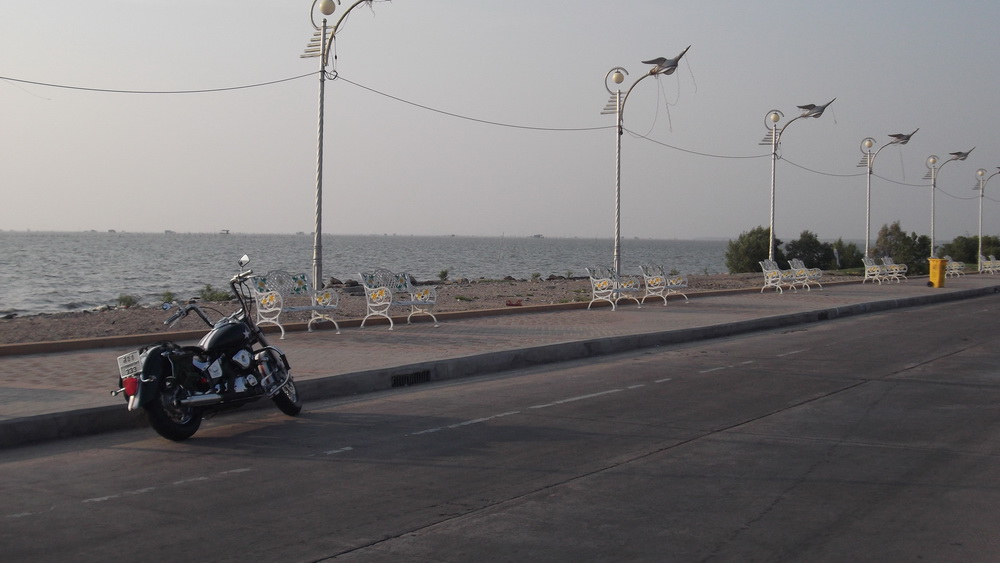 แบนโค้งมาลำเดียว....ไม่เหงาเนื่องจากมีเพื่อนเป็นรถ10ล้อ รถพ่วงเยอะ อิอิ...บรรยากาศยามเย็นหลังศาลากลางจังหวัดชลบุรี เส้นเลียบทะเล....เวลาประมาณ5โมงเย็นกว่าๆของวันนี้