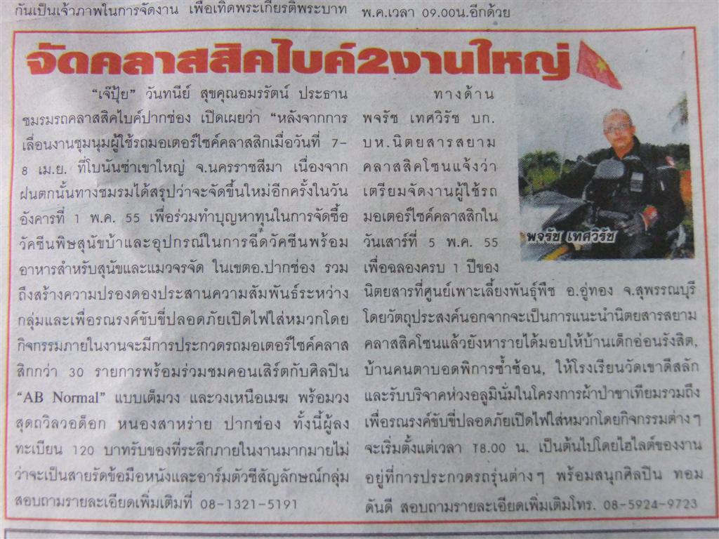 แถมอีก...มิตรภาพ ที่ไม่ใช่แค่ชื่อถนน......เป็นความสัมพัน ที่พันตูยากเกินแก้ และ แก่เกินแกงแล้ว กับคำว่าชอบ และคำว่ารัก ในสองล้อ...ใครจะว่าบ้า ใครจะบ่น ก็หาฟังไม่เพราะใจมันชอบ อันความชอบและความรัก ยากยิ่งนักจะหาประจักษ์ ใจไม่ ถ้า คนผู้นั้น ไม่รู้จัก รัก รักที่จะแบ่ง ปัน รักในการให้กันและกัน และรักที่จะอยู่ร่วมกัน.....ขอขอบคุณน้าๆ ที่แบ่งปัน น้ำใจนั้นควรยิ่งที่จะกล่าว กราบขอบคุณ