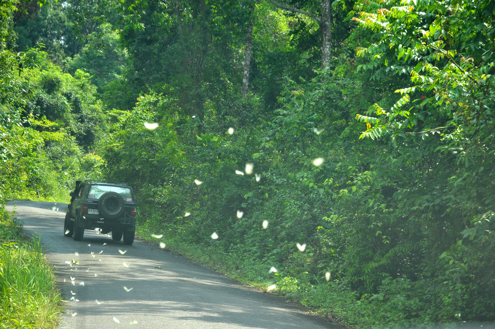ระหว่างทาง เจอผีเสื้อบิน ว่อน ตลอดทาง สงสารก็สงสาร แต่ก็เด็ด ไปเป็นร้อย ตลอดทางเกือบ 10 กม ดีนะ เรียบร้อย บินเป็นแถว ชิดขวา........ตามโป่งเยอะมาก