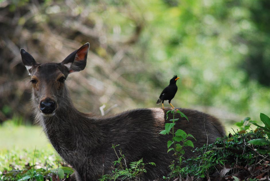 +++ระหว่างทางเข้าทุ่งกระมังบริเวณศาลาพรมเจอ นกเอี้ยงมาเลี้ยงน้องกวาง+++