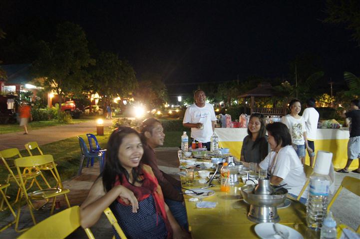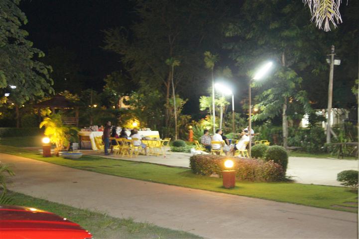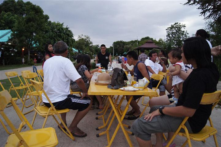 หลังจากเล่น กิน ชมธรรมชาติ และพูดคุยกันเป็นที่เรียบร้อยแล้ว แดดร่มลมตก จึงชวนกันเข้าที่พักซึ่งอยู่ห่างมากประมาณสี่ร้อยเมตร อาหาร เครื่องดืม ถูกจัดเตรียมมาอย่างเต็มที่ครับ ถือคติว่า มีกินให้หมด อดจะไม่ได้กิน