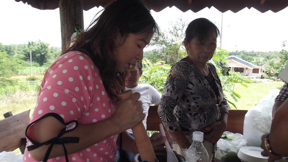 เห็นเพื่อนๆเหนื่อยมากลัวจะหิว พี่แหวว มือโขลกอันดับ1 ของเราก็รัวสากกระเบือทำส้มตำเป็นของว่างก่อน โดยมีแม่ใหญ่ (แม่พี่แหวว) ช่วยอยู่ข้างๆ...นี่ทริปเราไม่มีวัยรุ่นเลยแว๊.....ขอบอกท่านที่ไม่ได้ร่วมทริปกะเรา ส้มตวม อาหร่อยมว้ากกกก...........