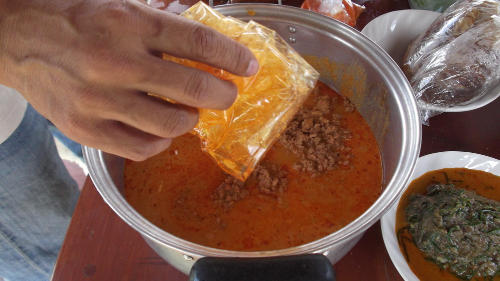 น้ำยาหมู...เกิดมาพึ่งเคยกิน.....นี่ถ้าพี่แหววไม่ทำมาให้กิน ไม่รู้ว่าชาตินี้จะได้มีโอกาศกินน้ำยาหมูหรือเปล่า...ขอบคุณพี่แหววมว้ากกกกกกก.......ส่วนข้างๆแกงคั่วหอยขม ที่พี่แป๋วยอมสละเบ็ดตกปลา กระโดดลงไปงมหอยเองกะมือ ไม่ได้กลับบ้านกลับช่องมา3วัน เนื่องจากเพลินกับการงมหอย..เพื่อเพื่อนๆแล้วแป๋วทำได้......ป่านนี้แป๋วแหววเครียร์เรื่องหอยเสร็จยางไม่รุแว๊........