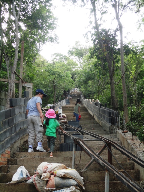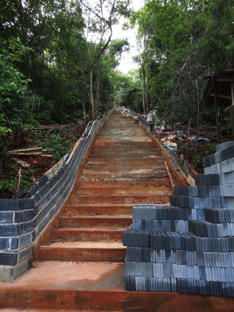 กองวัสดุมีวางเป็นระยะ หลังจากที่ทำเสร็จสิ้น ทางใหม่นี้ จะเป็นรูปพญานาค พื้นจะปูหินอ่อนสวยงาม