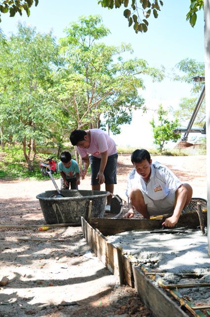 แล้วก็เข้าสู่กระบวนการผสมปูน เท และฉาบเรียบ โดยทีมงานมืออาชีพ (อาชีพอื่นที่ไม่ใช่ช่างปูน)