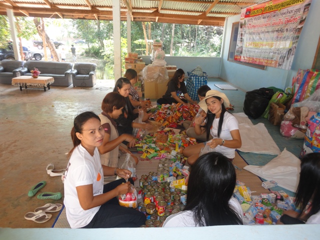เริ่มจากเตรียมแยกอาหารแห้ง ไว้แจก และใส่บาตรตอนเช้า