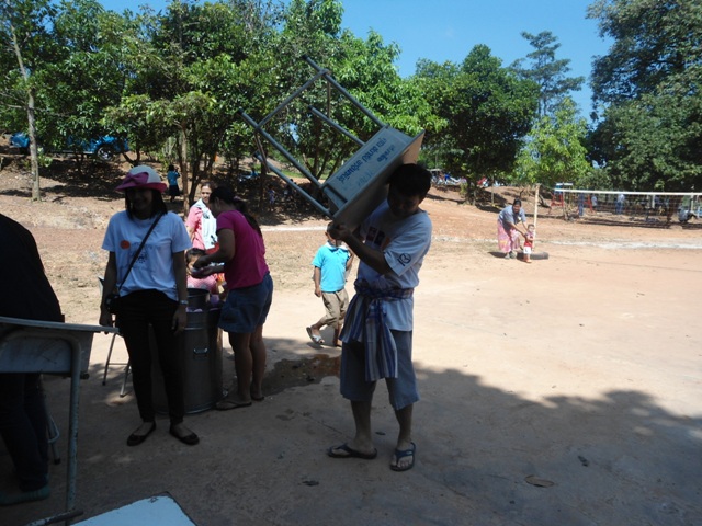 อ้อ ....ไปเตรียมพื้นที่วางอุปกรณ์แบบเรียนเครื่องเขียน รวมทั้งของแจกนี่เอง