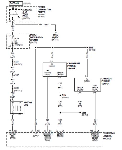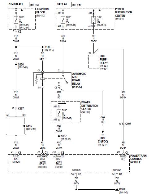 ASD Relay + F 20 (20 A) ไปกล่อง PCM. (Powertrain Control Modul)