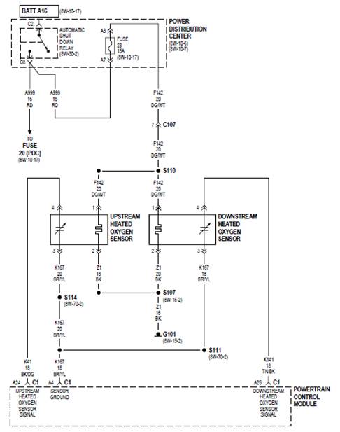 ASD Relay + F 23 (15 A) ไปอ๊อกซิเจนเซนเซอร์บน - ล่าง ( Upstream Heated Oxygen Sensor - Downstream Heated Oxygen Sensor)