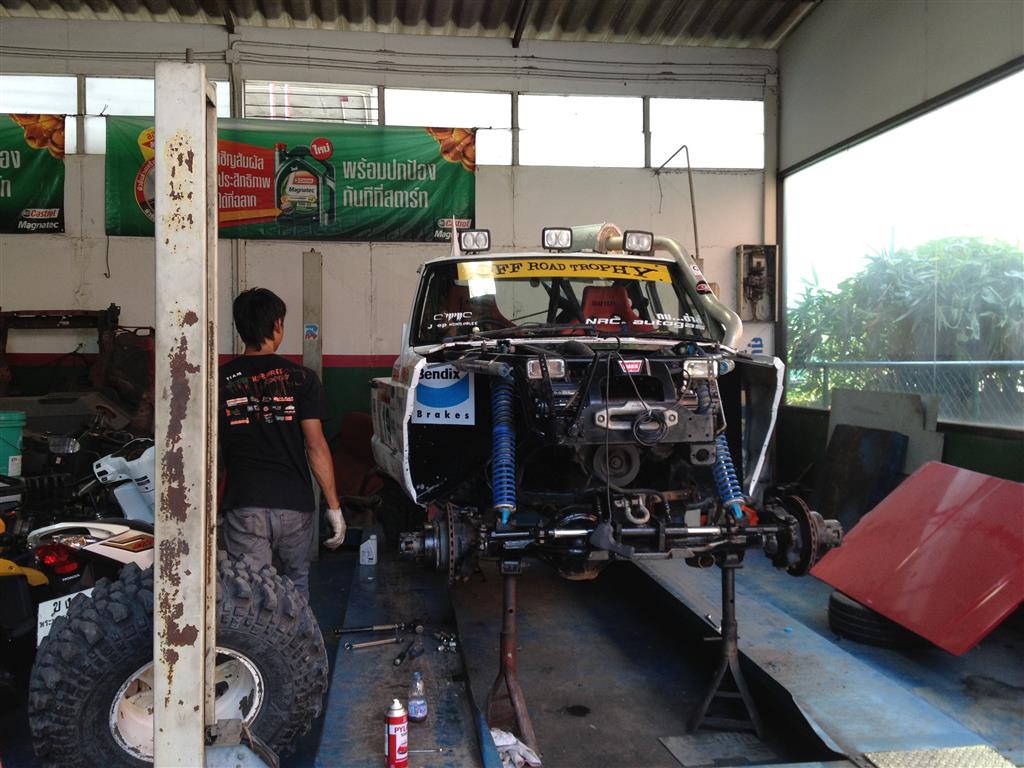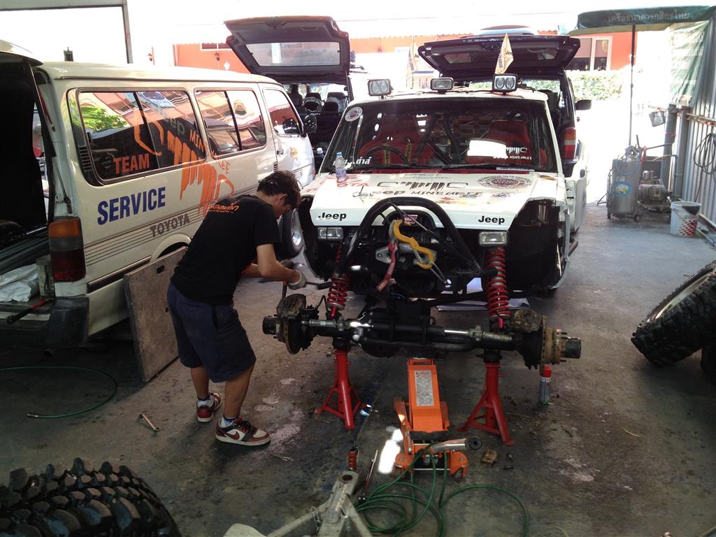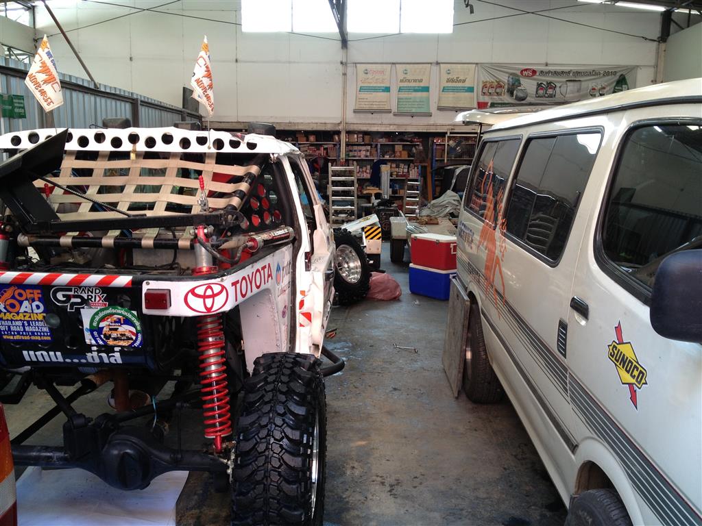 ที่สำนักงานใหญ่ของทีมแข่ง Jeep Minburee ก็ยุ่งกันอยู่เบรคติดหลังจากไปซ้อมที่บ่อดินมา