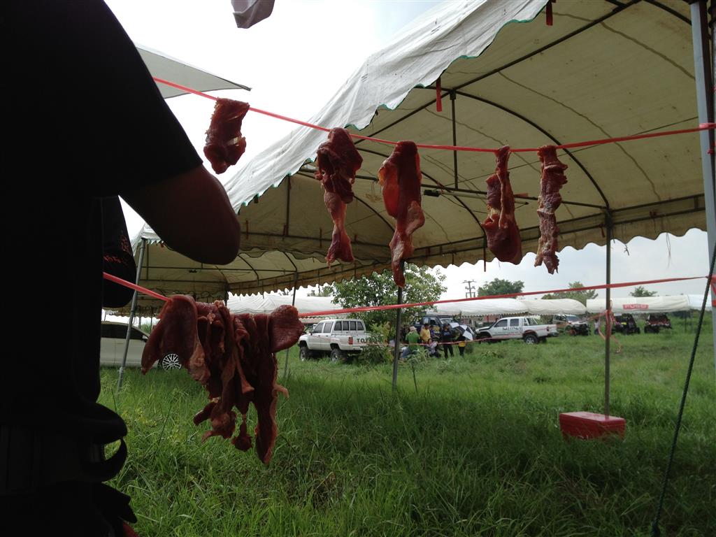 ระหว่างเตรียมพื้นที่..ร้านขายเนื้อก็เริ่มตากเหมือนกัน