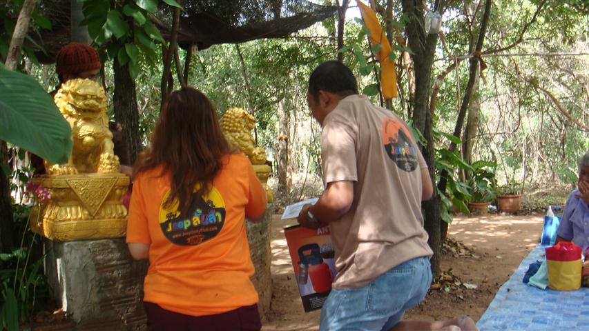 หลวงพ่อท่านมารอรับครับปัจจัยที่ชาวกลุ่มนำมาส่งมอบให้ทางสำนักสงฆ์และชาวบ้านได้ใช้ร่วมกัน