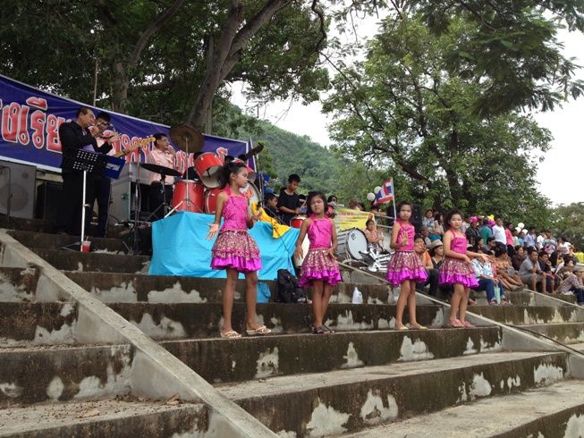 2. รร. บ้านถ้ำ เป็น รร.ประถม อนุบาล ถึง ป.6 ( คุณครู จิราพันธ์ แม้นทิม , ซ้ายมือ )