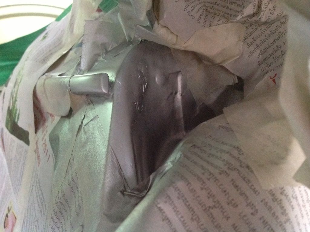 ...เมื่อลองเอาบันไดมาปีนขึ้นไปนั่งพินิจดูก็เห็นความกระจ่างถึงสาเหตุของการมาเยือนของน้องสนิมทันที นั่นเป็นเพราะ 'รางน้ำ' นั่นเองครับผม ...เมื่อไปเจอช่างทำสีรถบางคนที่อาจไม่เข้าใจถึงความสำคัญของรางน้ำข้างรถ ก็เลยอาจพาลละเลยรายละเอียดตรงจุดนี้ไปได้ อาจคิดไปเองว่าตรงนั้นมันมีแค่รอยเชื่อมหรือไม่ทันได้คิดว่าหากเอาสีโป๊วไปหมกโปะไว้ตรงสุดทางของรางน้ำแล้วมันจะส่งผลในระยะยางอย่างไร เพราะเมื่ออกจากอู่มาแล้ว ช่างท่านก็ไม่ได้ต้องมา 'นั่ง' รถอยู่กับเรา