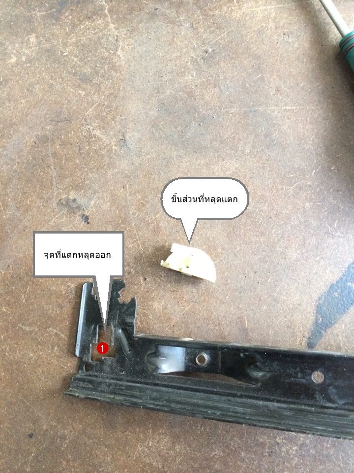 ทำให้สลิงรั้งตัวยึดเต็มที่ ทำให้พลาสติกแตกออก ช่างแนะนำว่าให้ดี เวลาเปิดกระจก
