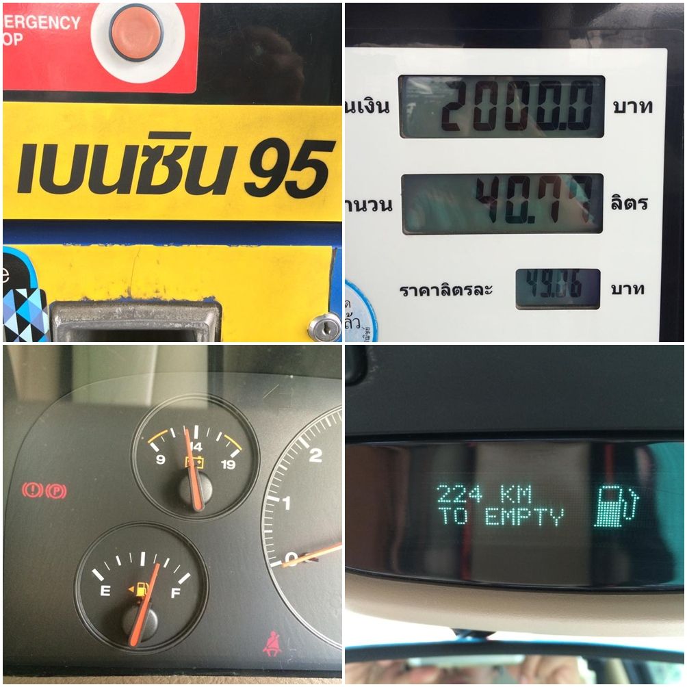 ใด้ 40.77 ลิตร หน้าจอโชว์ ว่าวิ่งได้ 224 กม. (8.92 บาท/กม.)