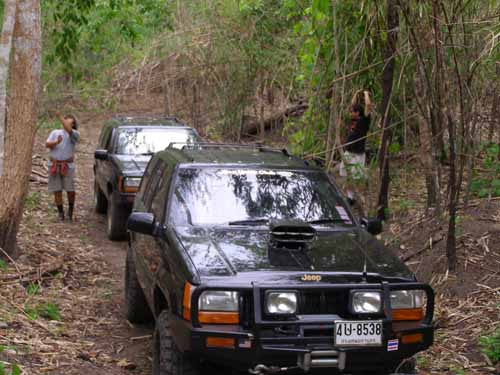 XJ พี่วรพล เป็นผู้นำขบวน ช่วยดัน กิ่งไผ่ เปิดทาง (ป่านี้ถ้าล้างรถแล้วคงเห็นลอยบาดเจ็บแล้ว) และตัวแก่เองก็ยังช่วยลงมาบู๊ ใช้สปาต้า ตัดกิ่งไผ่ช่วยเจ้าหน้าที่อีกสามคน