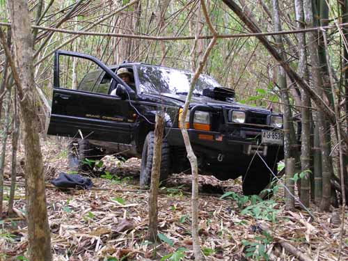 พวกเราไม่สามารถลากกิ่งไม้ ที่ขวางทางออกได้ ไม่ว่าจะโดย Winch พวกเราจึงจำเป็นต้องเปิดเส้นทางใหม่ โดยตัดกิ่งไผ่ และไปจึงถึงต้นไผ่ในบางจุด เพื่อที่จะให้รถสามารถผ่านไปได้