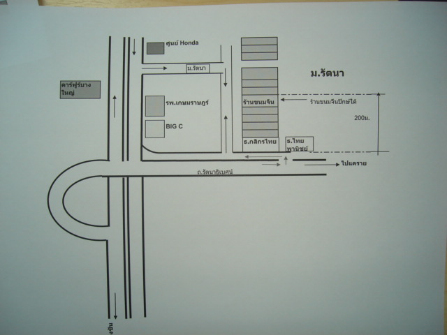 อยู่ ม.รัตนา หลัง Big C บางใหญ่ถนนเมน เข้าทาง ธ.กสิกรไทย ประมาน150ม.