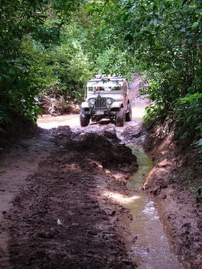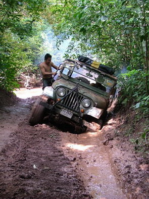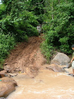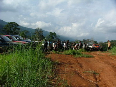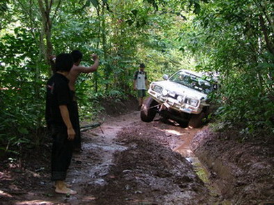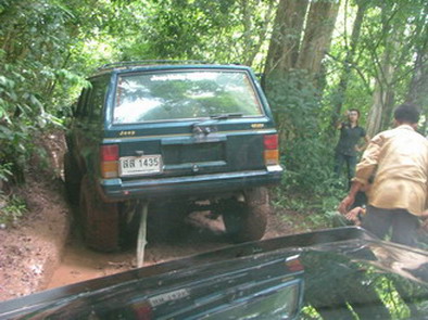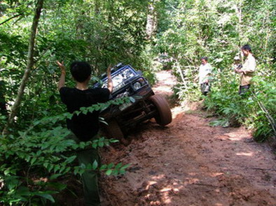 ตรงนี้ละครับประมาณ 45 องศา ขึ้นไปแล้วเลี้ยวหักศอกมีก้อนหินและรากไม้ขวางอยู่เป็นพัก ส่วนใหญ่จะไปติดตรงนั้นต้องถอยลงมาตั้งหลัก ส่วน Jeep 2 คัน ที่เดียวผ่าน มีเสียงตะโกนบอกเยี่ยม ไม่รู้ว่ารถ หรือคน