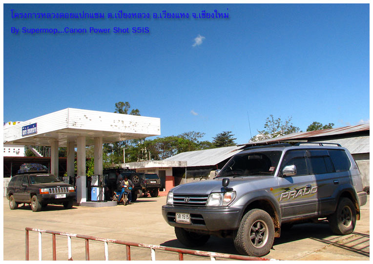 พวกเราเดินทางในเส้นทาง หน่วยจัดการต้นน้ำดอยสามหมื่น - อ.เวียงแหง แบบ Off Road ระยะทางประมาณ 20 ก.ม. ......แล้วมาเติมเชื้อเพลิง (ตุนเอาไว้ก่อน) พร้อมกับซื้ออาหารสด + เครื่องดื่ม ที่ อ.เวียงแหง กันก่อนเดินทางไป ต.หลักแต่ง ....สุดชายแดนประเทศไทย
