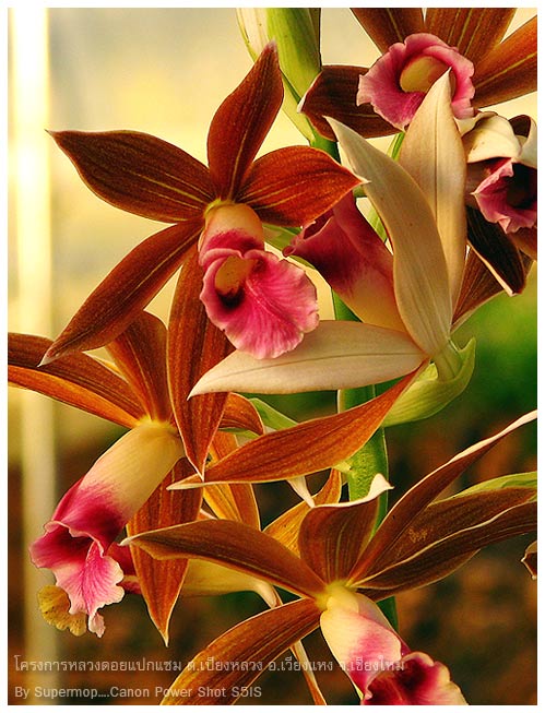 ก่อนพระอาทิตย์ตกดิน คว้ากล้องเดินเข้าไปเรือนเพาะชำกล้วยไม้ดีกว่า.....พันธ์อะไรไม่รู้ จนท. บอกว่า อะไรเชี่ยม ๆ จำไม่ได้...555