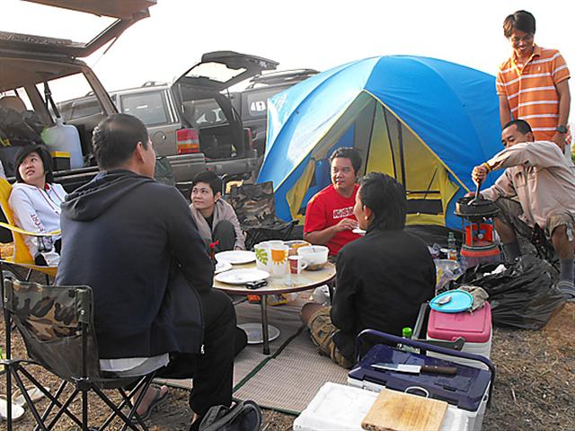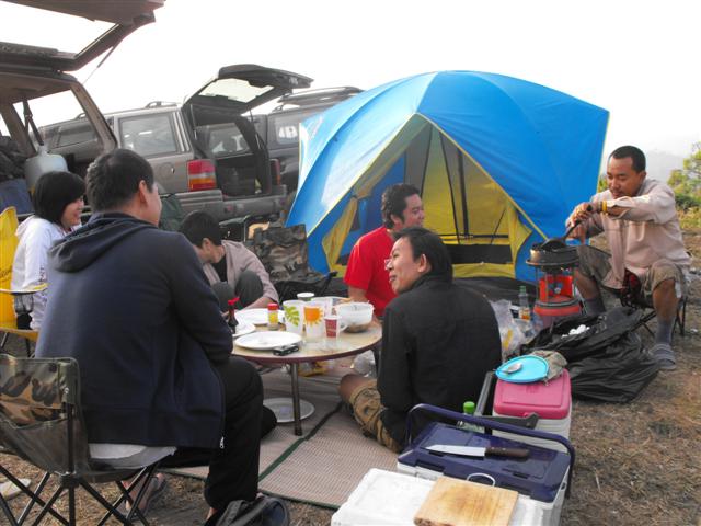ตื่นมาด้วยเสียงจอแจ ประมาณตี 5 เฮ้ยคนมาจากไหนกันเนี่ยเมื่อคืนม่ะเห็นมีใครเลย ยังกะตลาดนัด คนขึ้นมาชมทะเลหมอกดูพระอาทิตย์ขึ้น เพลินตาจริงๆโดยเฉพาะกรุ๊ป นศ. ทำให้เช้านี้มันสดใสจริง จรีง