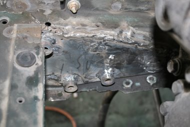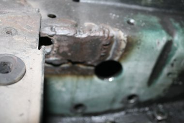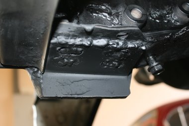 จากรูปด้านบนจะเห็นได้ว่าบริเวณจุดยึดบู๊ชตัวบนด้านหน้าของเก่าขาดหมดแล้วนี่เป็นปัญหาที่ทำให้ยึดกระปุกได้ไม่แน่น ซึ่งด้านในก็เช่นกัน คันนี้หัวคัสซีแทบขาดน่าจะชนหนักมา