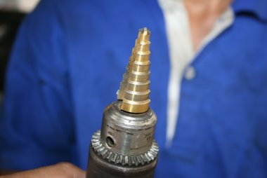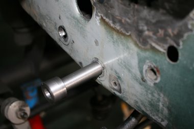 เจาะแล้ววัดให้พอดีแป๊ะเพื่อป้องกันการขยับของแกนบู๊ช เจาะเสร็จลองวัดดูได้พอดีไม่มีหลวม
