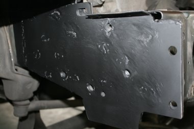 ภาพการดามเดิมจากของเก่าทั้งสองด้าน พบว่าเหล์กหนาๆ ธรรมดาเอามาประกบ อาจจะแก้อะไรไม่ได้เลยในระยะยาว ดูเหมือนจะเป็นจุดอ่อนของ XJ เพราะต่อให้เราแปะแผ่นเหล็กด้านข้างทั้งสอง แต่แรงกดจากกระปุกพวงมาลัยก็จะบีบจนด้านบน-ล่างเสียรูปและเกิดช่องทำให้เกิดเสียงเอี๊ยดๆ ในจังหวะหมุนพวงมาลัย
