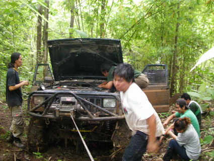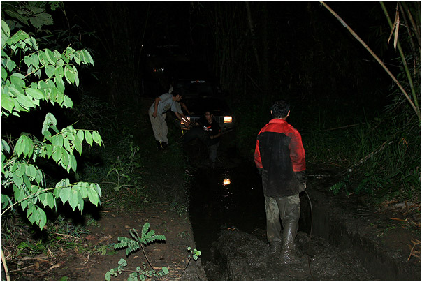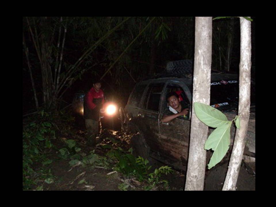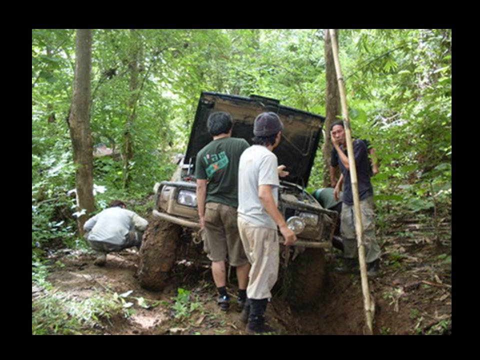จุดนี้เป็นจุดที่รถพี่ชัยลงบ่อแล้วเครื่องดับ ปรากฏว่าฟลายวีวเซนเซอร์เสียซ่อมจนเริ่มมืด...ออกเดินทางต่อ ในรูปรถพี่เอขับได้ล้อเดียว ปุ๊ยลากพี่เอจนถึงหน่วยเขาลวก ส่วนรถพี่ชัยดับ 3-4 ครั้งต้องจอดซ่อมเป็นระยะ ๆ จากจุดนี้ไปถึงเนินชันไม่ไกลมากแต่ใช้เวลานานเพราะรถแต่ละคันมีปัญหา กว่าจะถึงหน่วยเขาลวกก็ปาไปตีหนึ่ง ทริปนี้รักทุกคนเลย