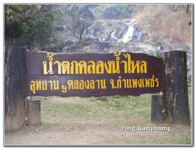 น้ำตกคลองน้ำไหล ตั้งอยู่ในเขต อุทยานแห่งชาติคลองลาน อยู่ห่างจากที่ทำการประมาณ 25 กิโลเมตร จากเส้นทางสายอุ้มผาง-คลองลาน ก่อนถึงอำเภอคลองลาน มีทางแยกด้านขวาเข้าสู่น้ำตก เรียกว่า ถนนปางควาย ระยะทาง 10.5 กิโลเมตร ถึงน้ำตกคลองน้ำไหล ซึ่งเป็นน้ำตกขนาดกลาง สายน้ำไหลลดหลั่นกันลงมา มีทั้งหมด 9 ชั้น แต่ละชั้นมีแอ่งน้ำและความสูงต่างกัน ลานหินที่นี่กว้างมากเป็นสีนิลวาววับเมื่อตัดกับสายน้ำ ลำธารสวยด้วยโขดหิน ในชั้นที่ 3 น้ำตกจะแยกเป็น 2 สาย ดูสวยงาม