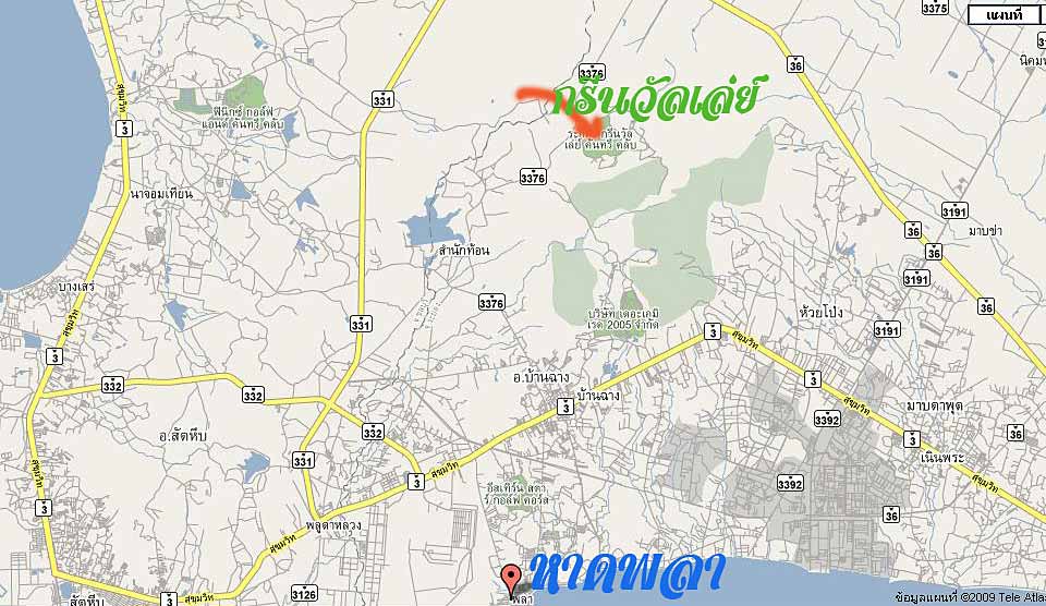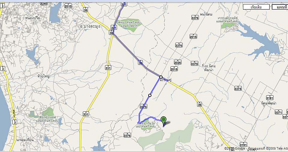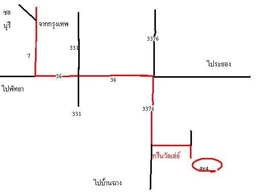 แผนที่ เดินทางไปเขานางหย่อง ทางขึ้นเสาไฟฟ้า เข้าข้าง สนามกอล์ฟกรีนวัลเลย์ ระยอง