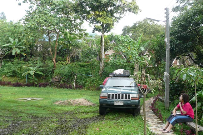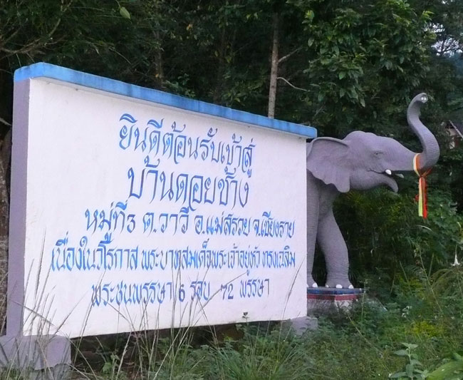 ถึงละแวกหมู่บ้านดอยช้าง หาที่กางเต็นท์ไม่ได้เลย เพราะพื้นหญ้าแฉะไปด้วยน้ำหลังฝนตกหนักเมื่อคืน รีสอร์ททรงสามเหลี่ยมด้านหลังก็ไม่ใช่แนวอีก