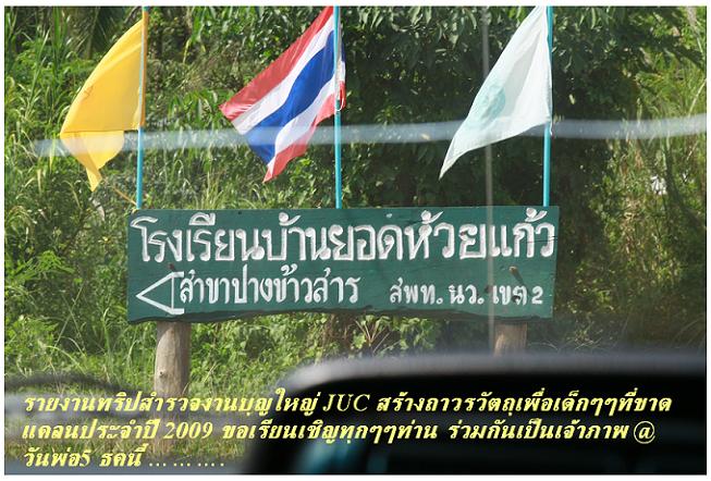 สำเร็จลุล่วงกันไปได้ด้วยดี แม้จะมีเรื่องนิดหน่อยครับ สำหรับทริปสำรวจงานบุญ 2009 (งานเข้า ยางแตกแบบขำๆๆ เป็นสีสันของทริป JUC ทีได้มีเห็นกันทุกๆๆทริป แต่ด้วยกุศลบุญมั้งครับที่เราชาว JUC ได้แคล้วคลาดรอดมาได้ด้วยสวัสดิภาพทุกๆๆทริป ) ยังงั้นขอรายงานเลยแล้วกันนะครับ