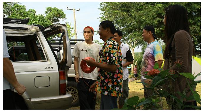 อีกฝ่าย พี่ตุ๋ย กำลังเปลี่ยนเสื้อผ้า มาพร้อมผ้าขาวม้า+อุปกรณ์อาบน้ำแปรงฟัน (ตัวละครเดินไป เดินมา โม้ไป โม้มา)
