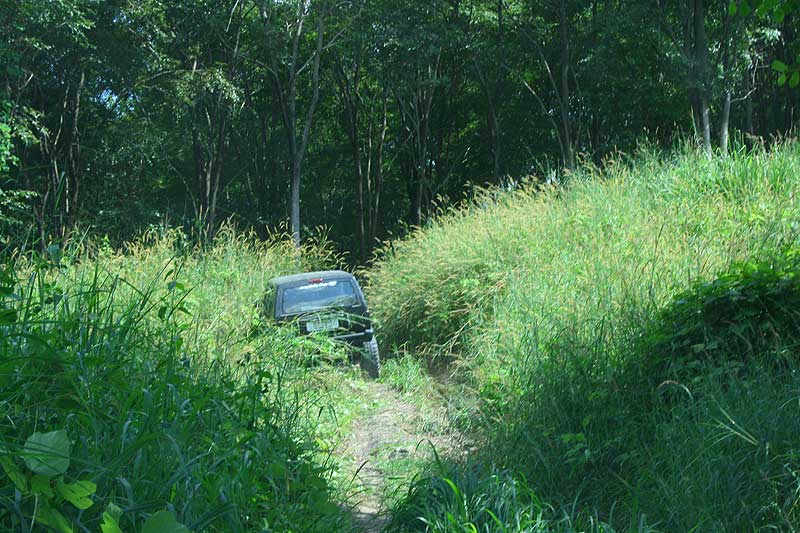 เส้นทางเริ่มเต็มไปด้วยกิ่งไม้ 2 ข้างทาง แถมมีหินดักอยู่ใต้หญ้า