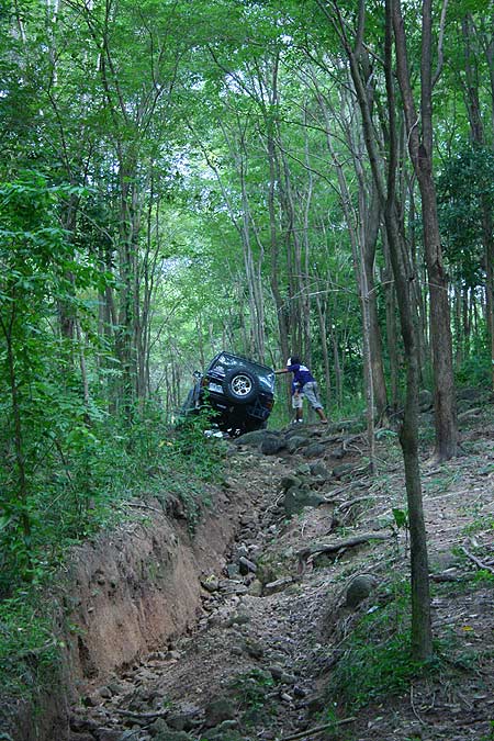 เหวอมาก จนคนขับเอามือออกมา ค้ำต้นไม้
