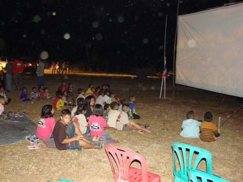 กลางคืนมีหนังกลางแปลงให้เด็ก ๆ ดูเหมือนเคย