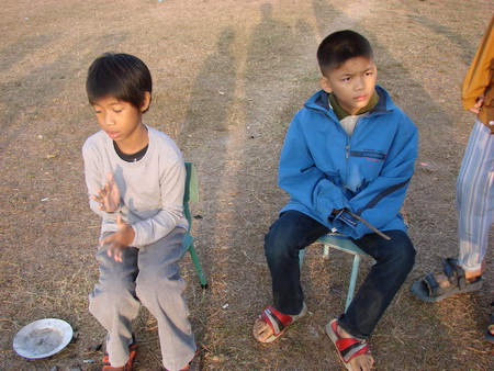 เด็ก ๆ ก็มานั่งผิงไฟแล้วก็ย่างมันกิน ตอนเช้าครับ