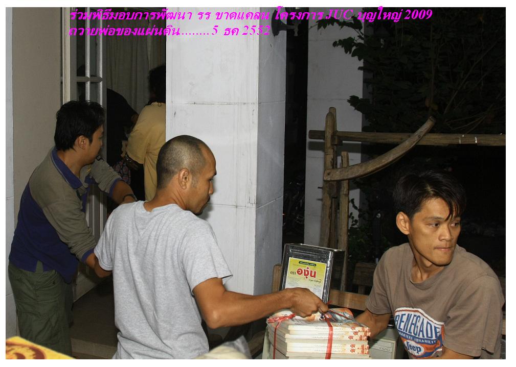 ภาพชาว JUC ร่วมทำกิจกรรมความดีถวายแด่พ่อหลวง ปี 2552 โครงการร่วมสร้างโอกาสทางการศึกษาให้แก่เด็กโรงเรียนยอดห้วยแก้วสาขาปางข้าวสาร จังหวัดนครสวรรค์