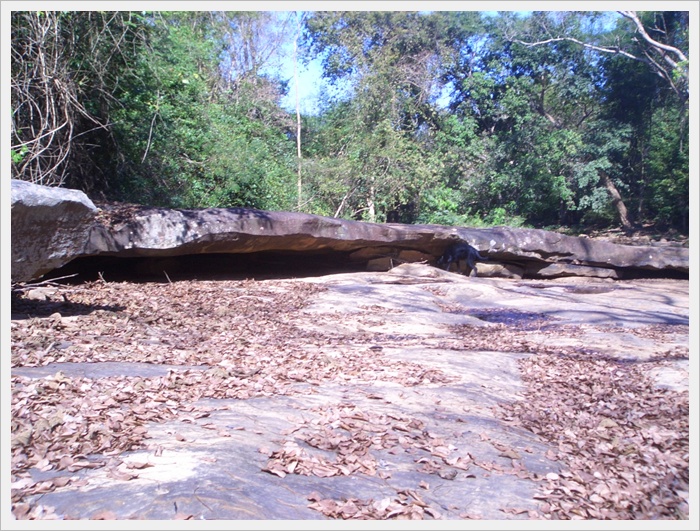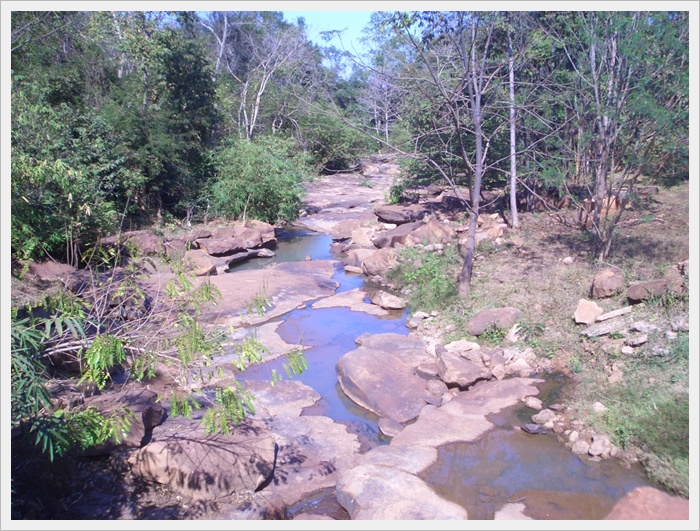 พื้นหินและทางน้ำไหลอยู่ตรงปากทางเข้าบ้านซับเต่าที่เคยชวนหนูดีลงไปดูรอยเท้าโบราณ