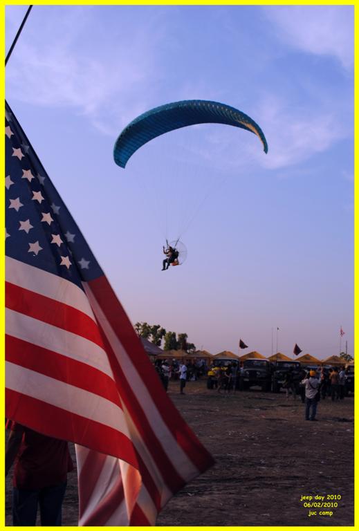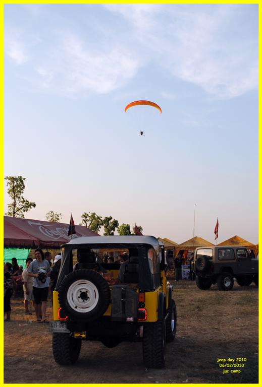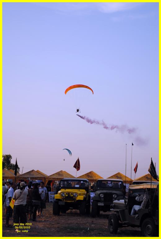 หลังjeep ทหารเข้าสู่ลาน ติดตามมาด้วย ร่มบินจากปทุมธานี บินโฉบเฉียวไปมาดูแล้วเพลินดีครับ....
