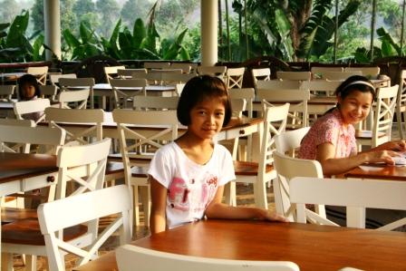 อาหารเช้ามีทั้งแบบฝาหรั่ง (ไข่ดาว หนมปัง ไส้กรอก) และ ไทย (ข้าวต้ม)